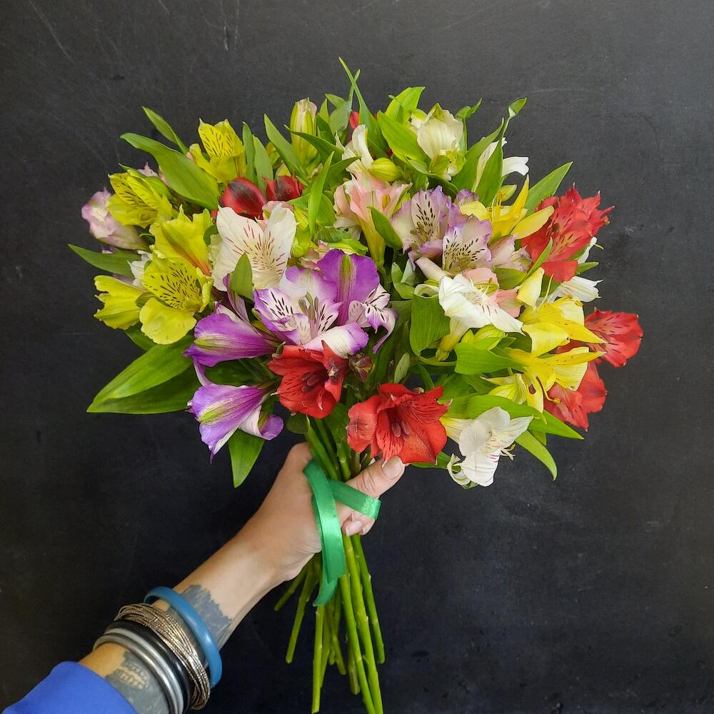 Лента атласная – 2 шт.альстромерия микс – 17 шт.