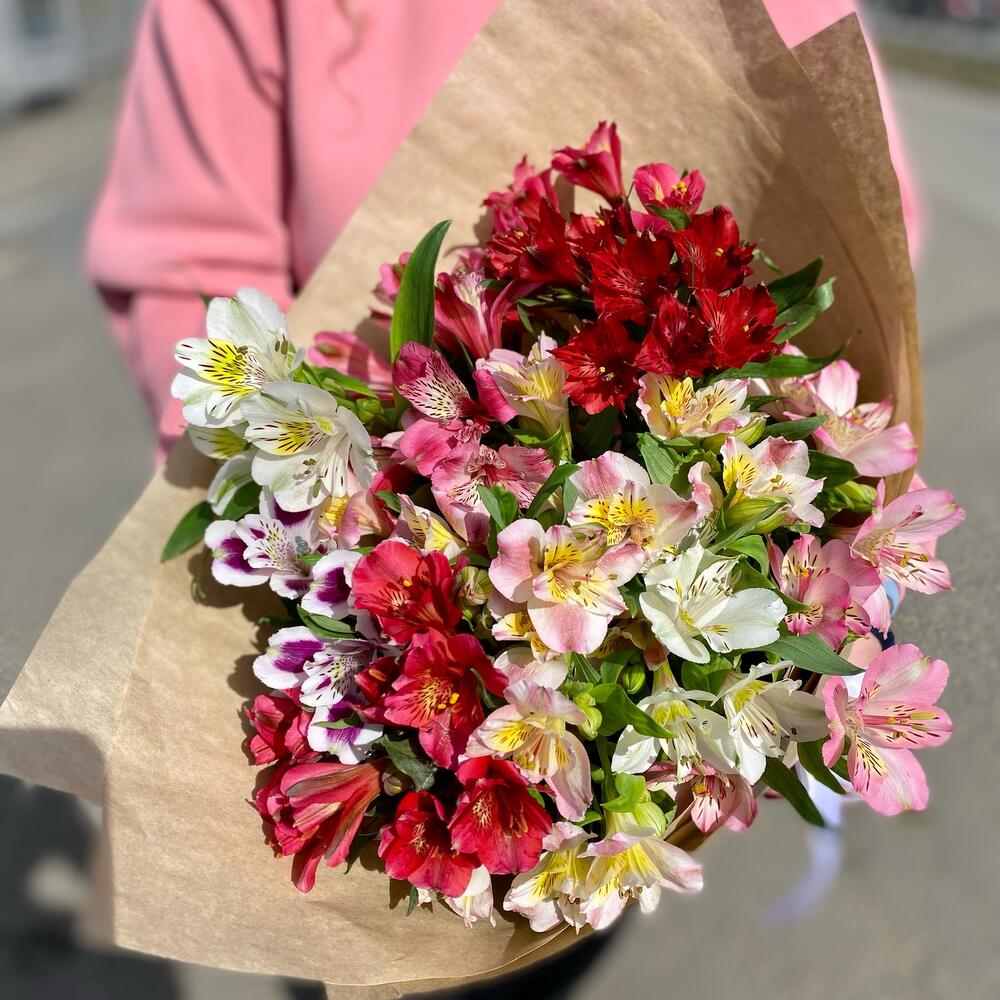 Альстромерия – 11 шт.Крафт упаковка – 1 шт.Лента атласная – 1 шт.