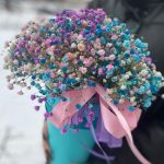 “Сиреневый туман” – композиция из гипсофилы в шляпной коробке