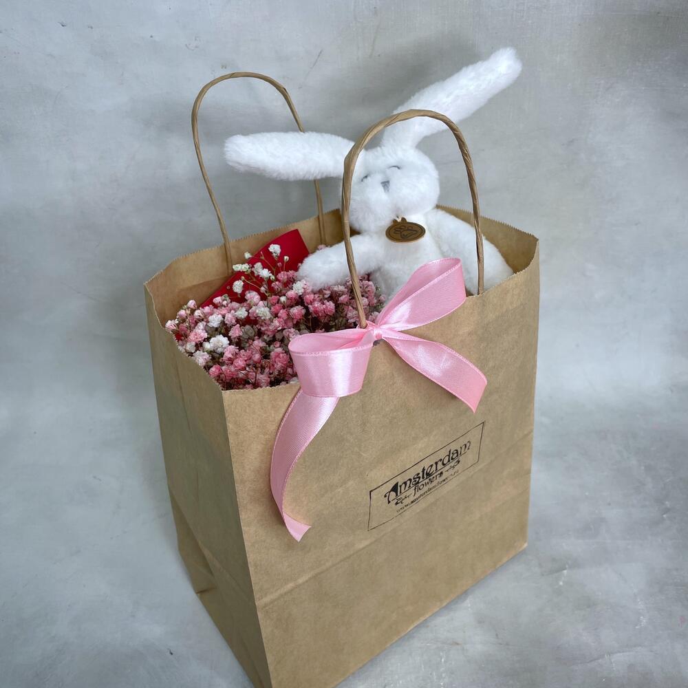Гипсофила – 3 шт.Упаковка – 1 шт.игрушка зайчонок lapkin – 1 шт.Пакет крафт – 1 шт.