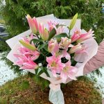 Лилия розовая – 5 шт.Тишью – 2 шт.структурированны фаомиран – 3 шт.