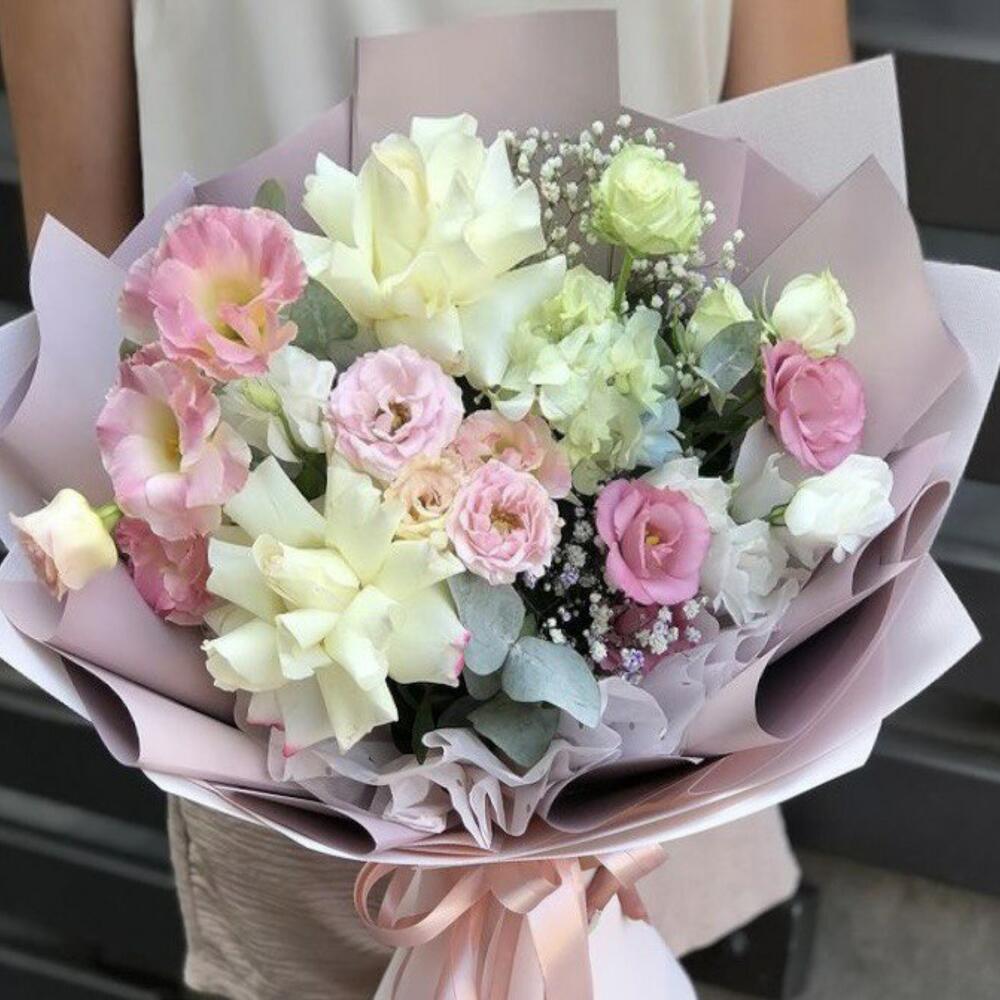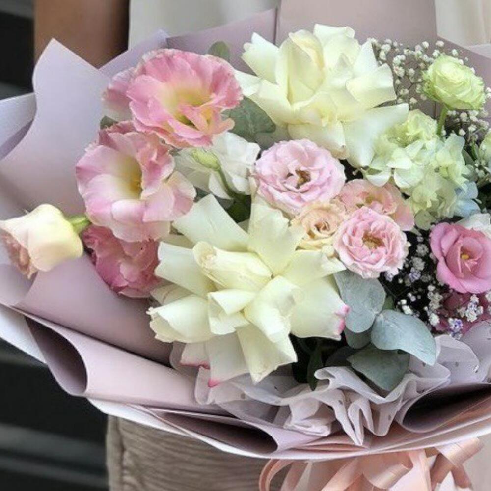 Кустовые розы, Лизиантусы, Пионы, Розы, Хризантемы