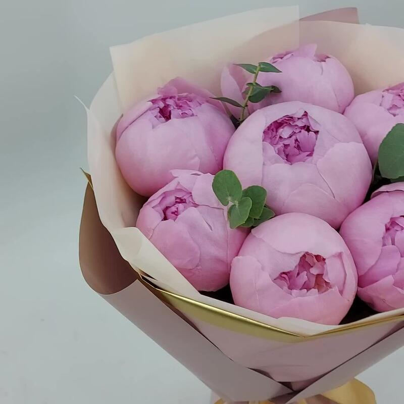 Эвкалипт – 1 шт.Упаковка дизайнерская – 1 шт.пион энджел чикс – 7 шт.