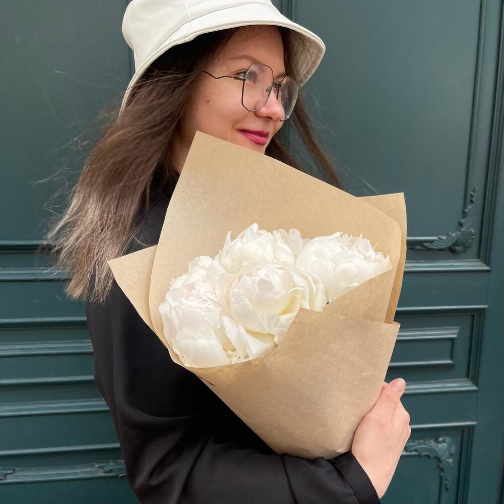 Крафт – 1 шт.пионы белые – 5 шт.