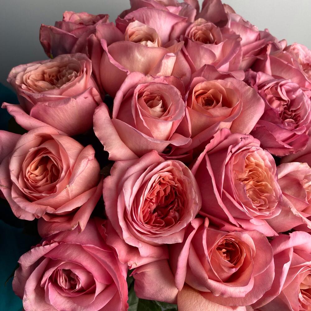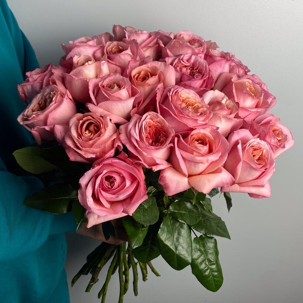 Лента атласная – 1 шт.Роза пионовидная – 25 шт.комплимент от polyanka – 1 шт.