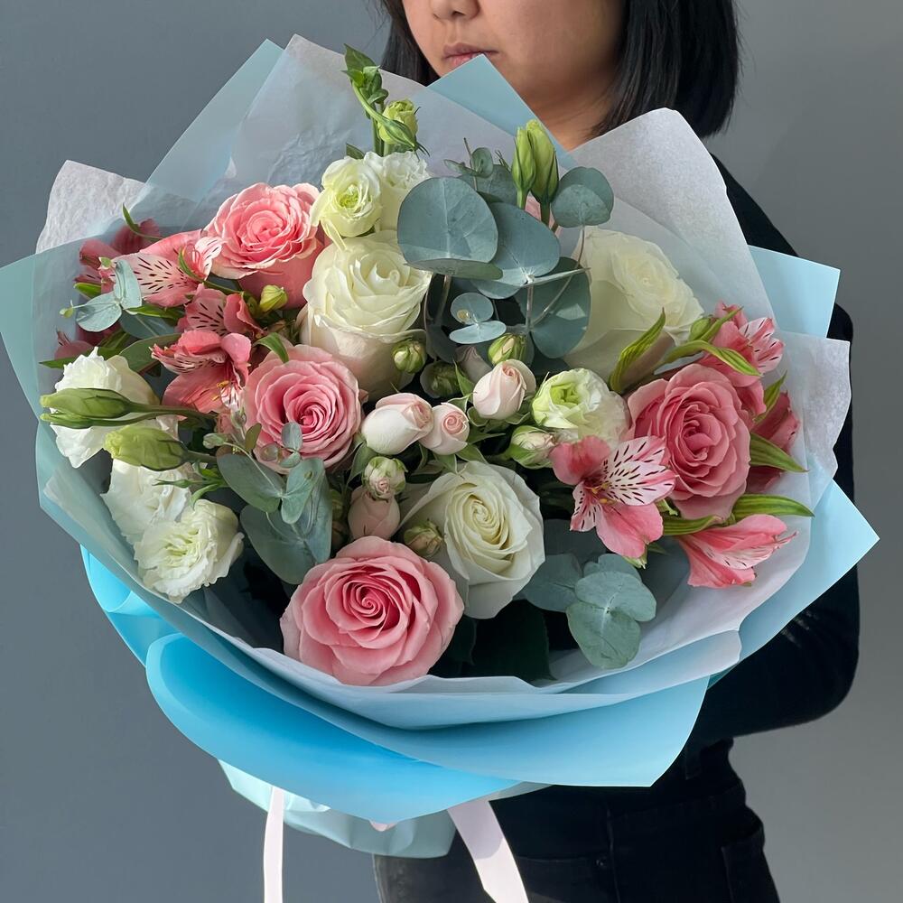 Гвоздики, Лизиантусы, Розы, Тюльпаны