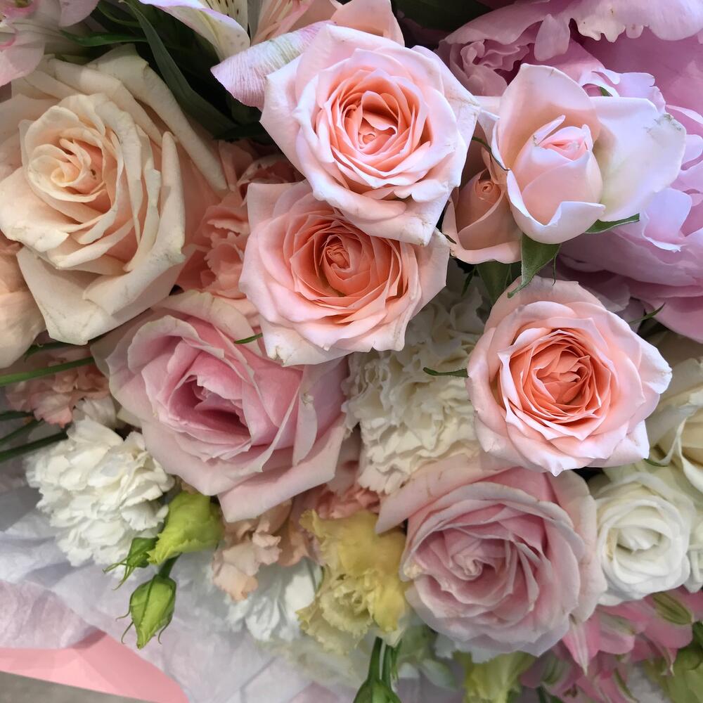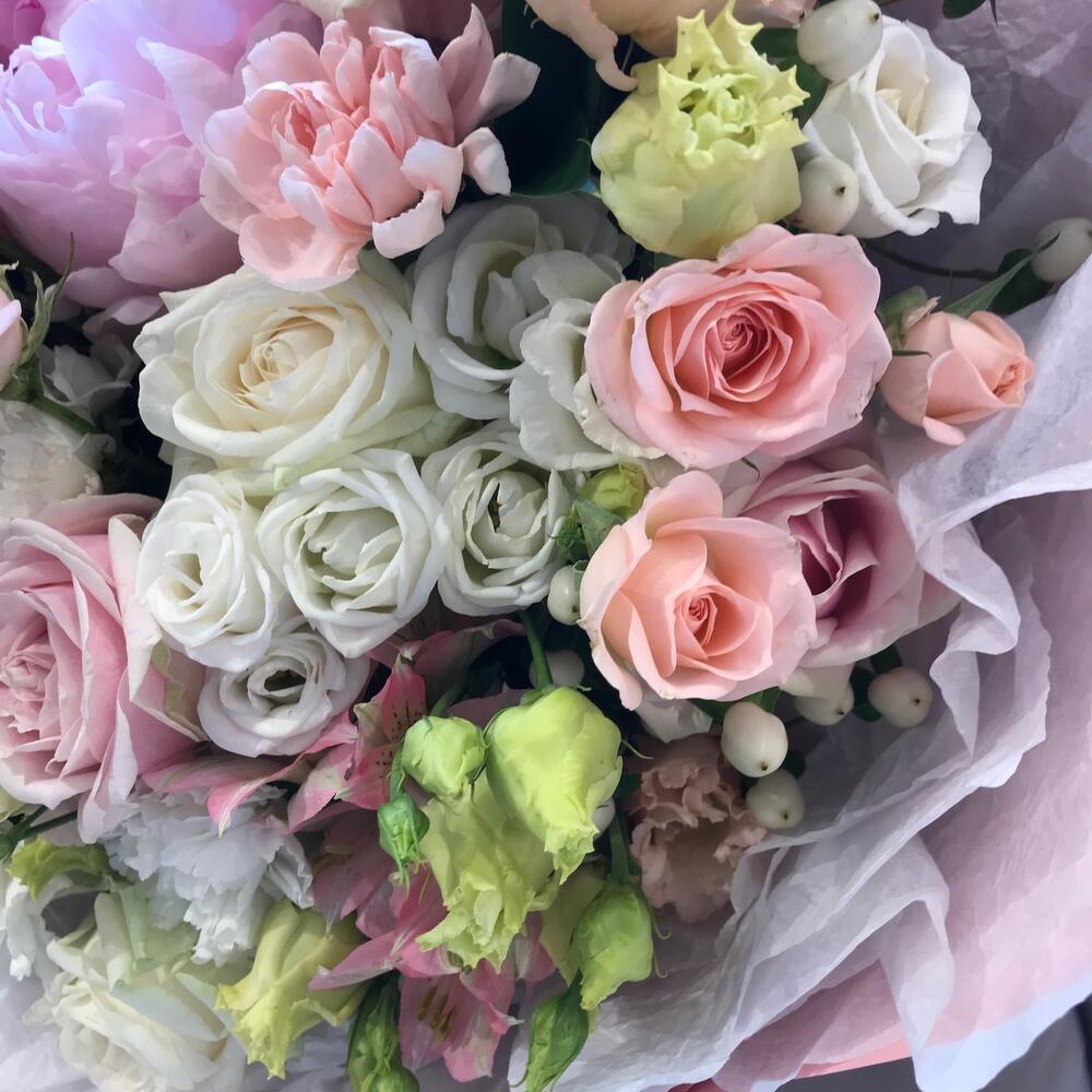 Категорий: Гвоздики, Кустовые розы, Лизиантусы, Пионы, Розы