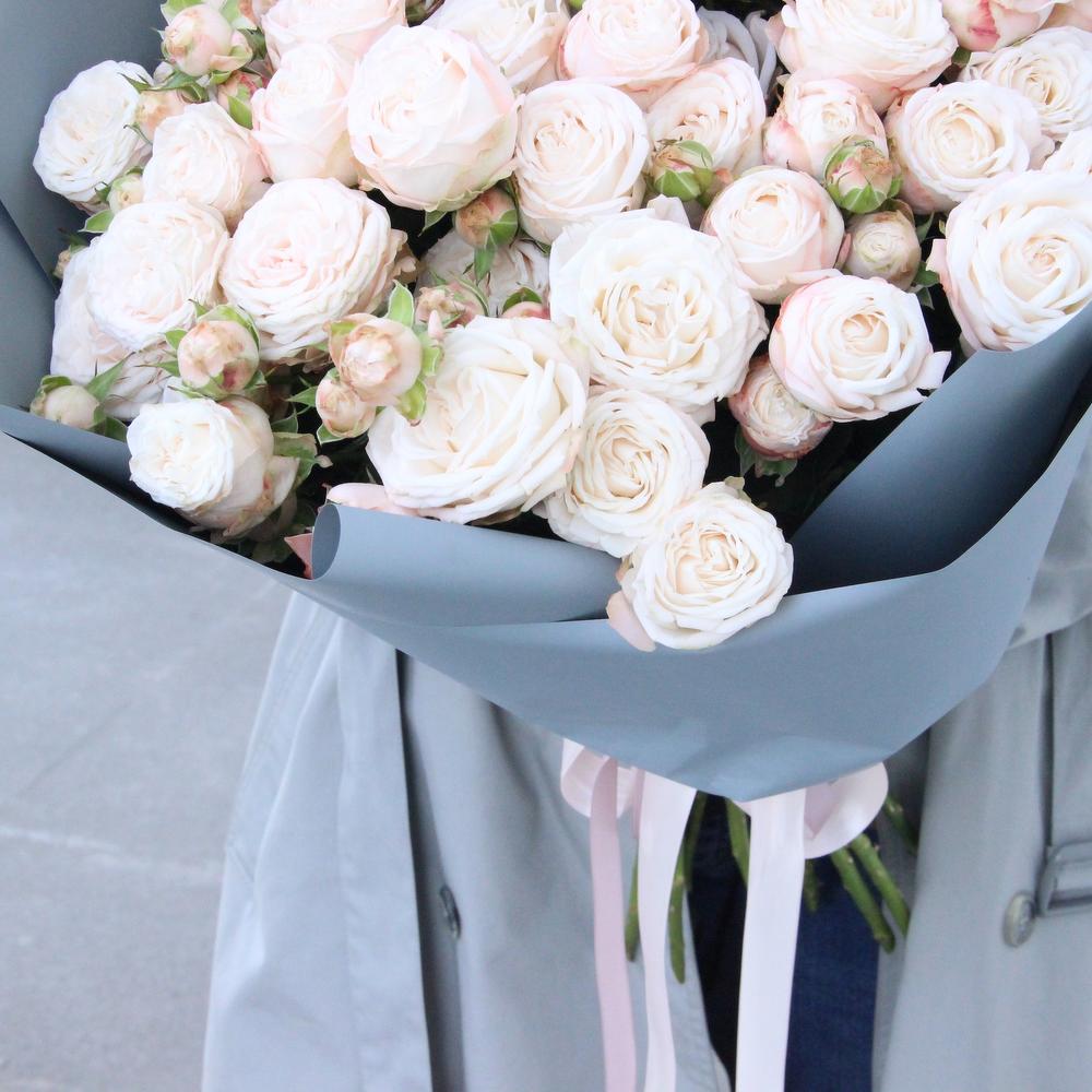 Упаковка – 3 шт.Лента атласная – 2 шт.Роза кустовая пионовидная – 13 шт.