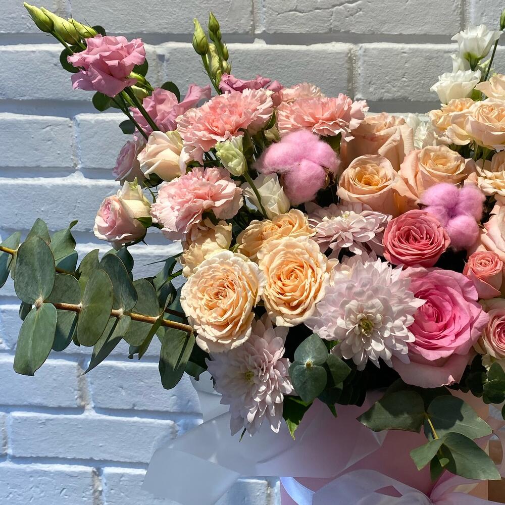 Гвоздики, Кустовые розы, Пионовидные розы, Розы