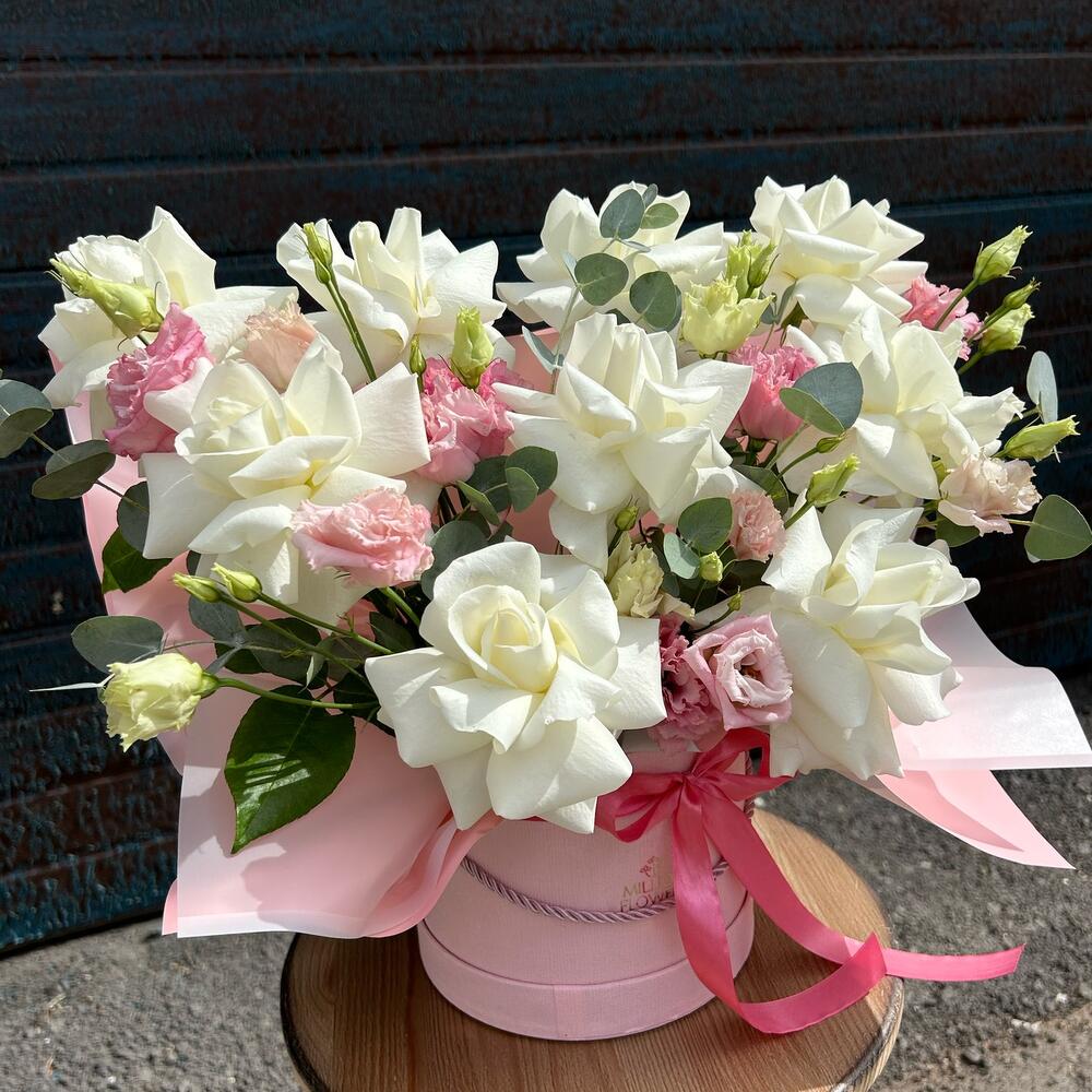Альстромерии, Кустовые розы, Лизиантусы, Пионовидные розы, Розы, Ромашки