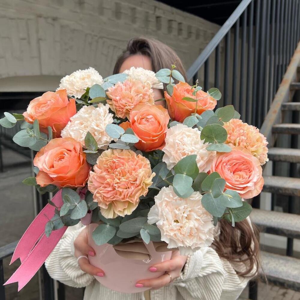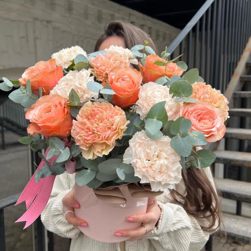 Гвоздики, Кустовые розы, Пионовидные розы, Розы