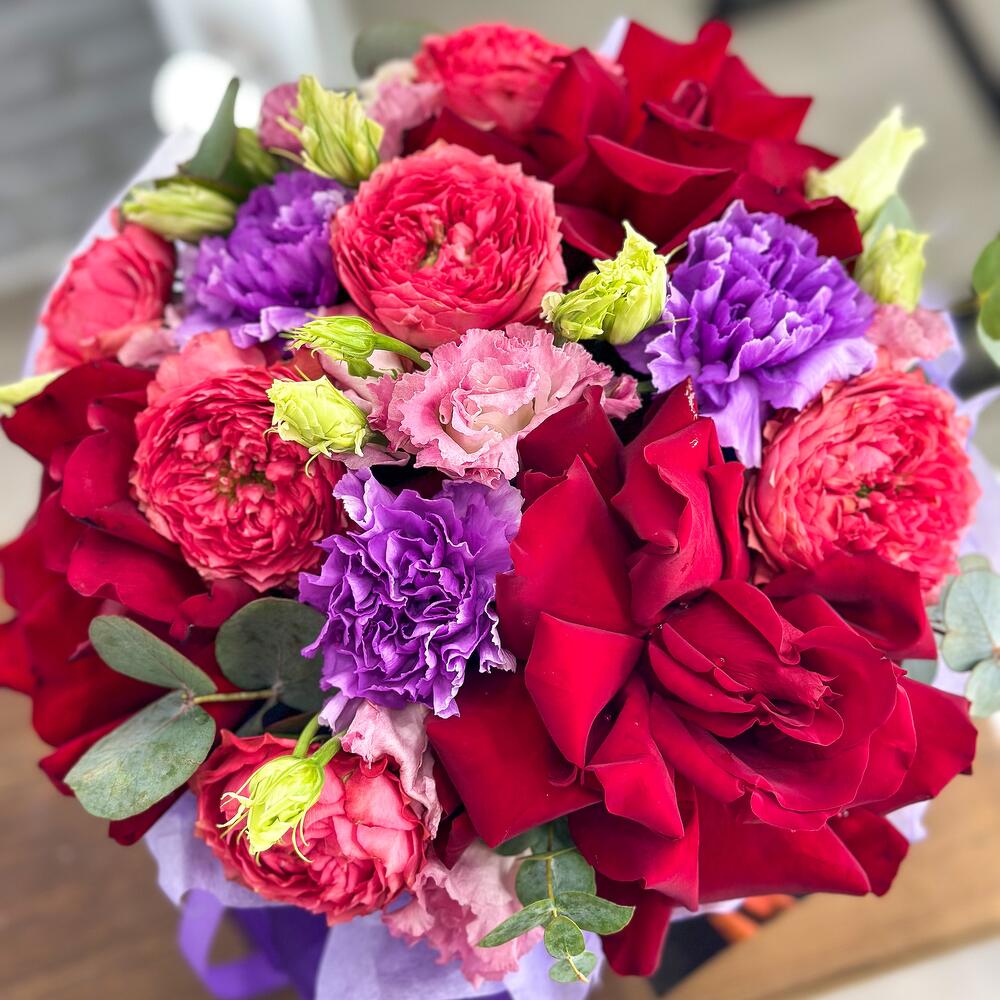 Категории: Гвоздики, Лизиантусы, Пионовидные розы, Розы