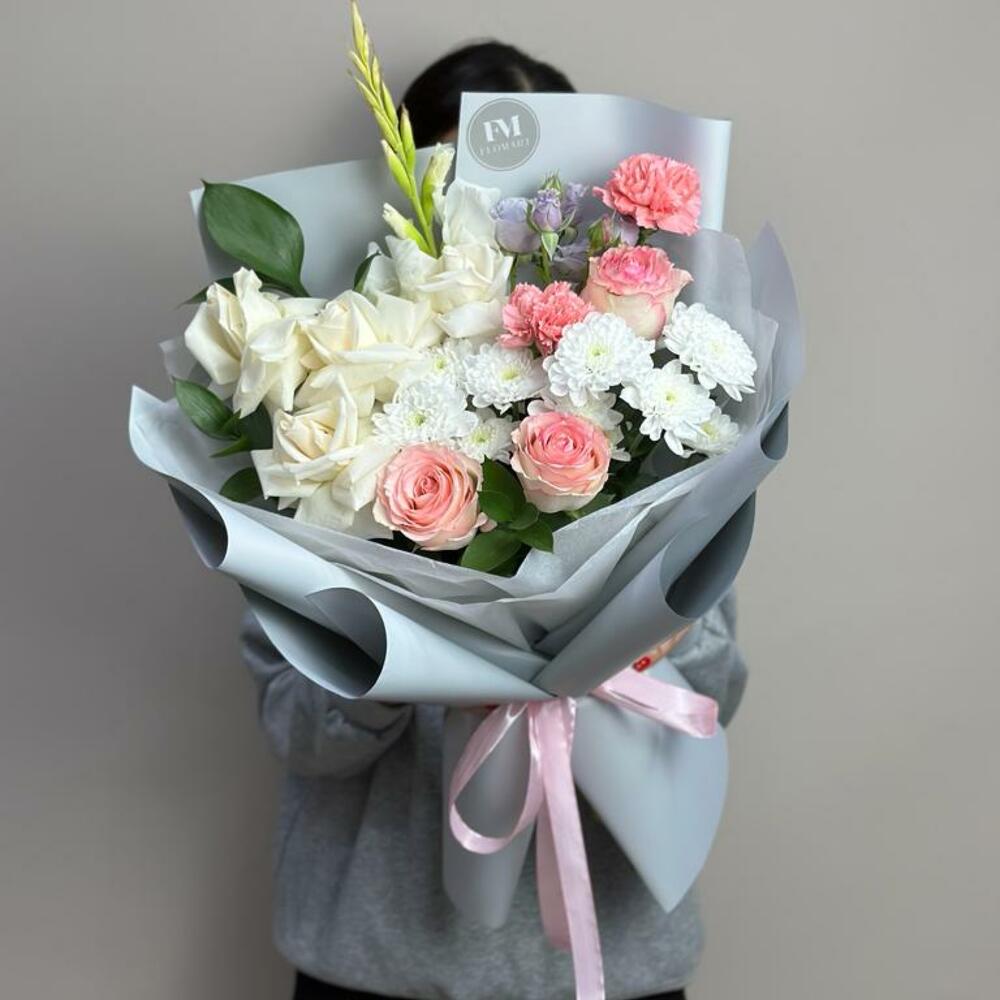 Альстромерии, Кустовые розы, Лизиантусы, Пионовидные розы, Розы, Ромашки