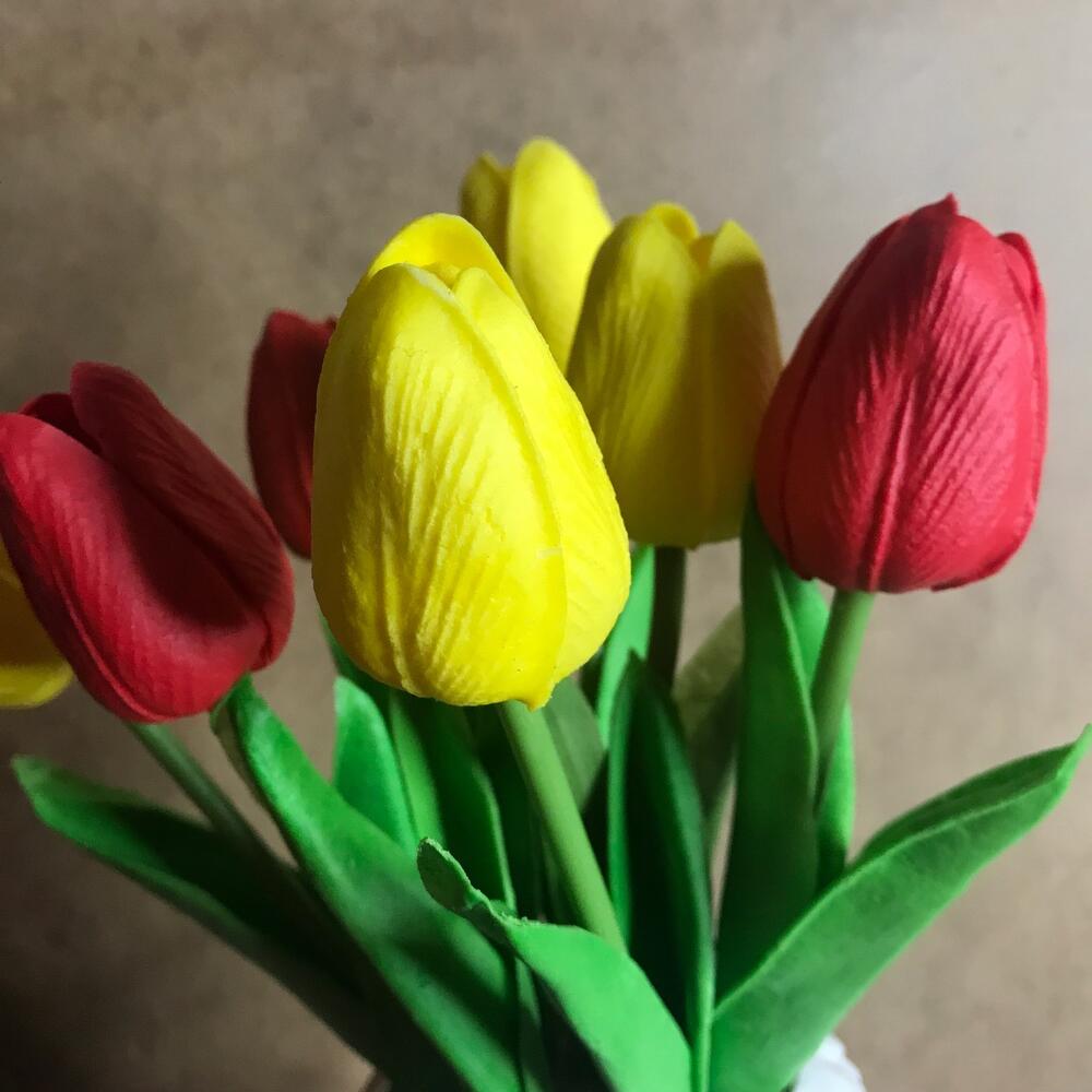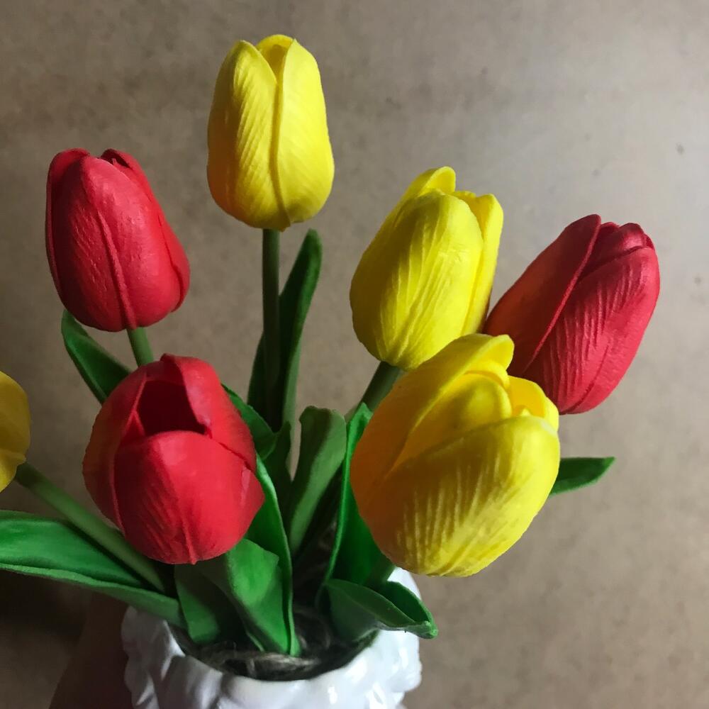 тюльпан искусственный силиконовый – 7 шт.гипсовое кашпо «давид» (ручная работа) – 1 шт.